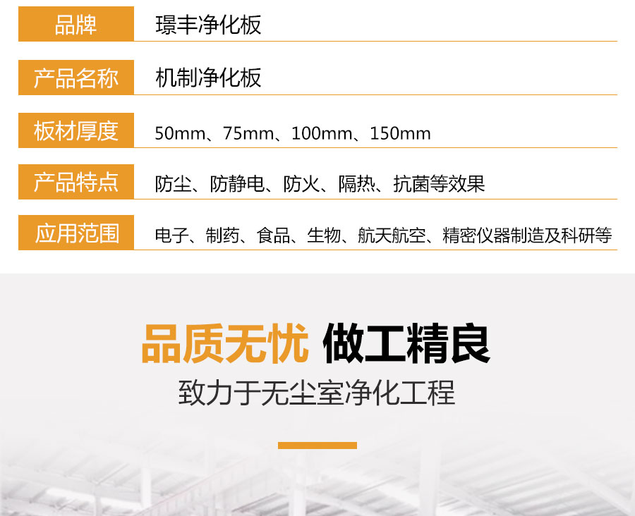 聚氨酯凈化巖棉板又稱潔凈板是由彩涂板、不銹鋼等材質(zhì)作為面材的復(fù)合板,因其具有獨(dú)特的防塵、防靜電、抗菌等效果,被廣泛應(yīng)用于電子、制藥、食品、生物、航天航空、精密儀器制造及科研等對室內(nèi)環(huán)境要求苛刻的凈化工程領(lǐng)域。